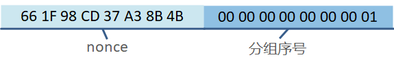 其中,前8个字节为nonce,这个值在每次加密时必须都是不同的。后8个字节为分组序号,这个部分是会在加密的过程中逐次累加的。