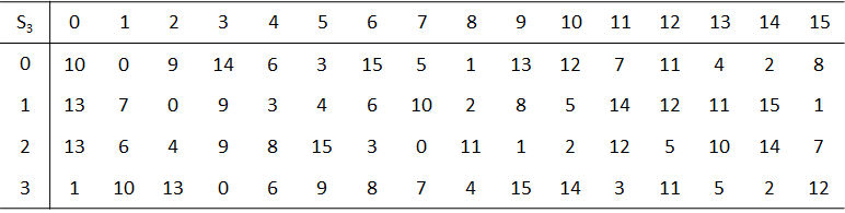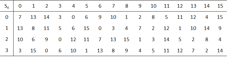 • 对于S-盒的两个输入,如果开头的两位不同,但最后两位相同,则输出必须不同。