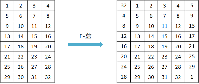 E-盒是一种特殊的置换。它需要将32位的比特扩展为48位。